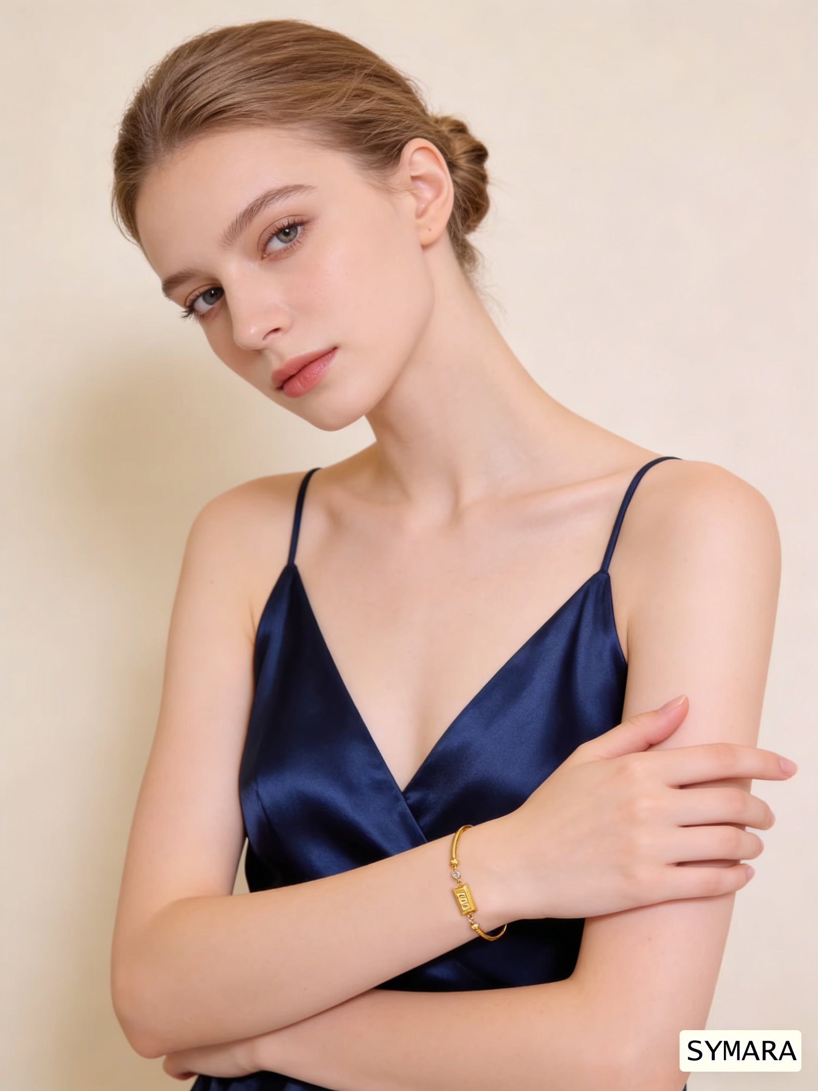 Style: Minimalist layered look—bangle meets chain