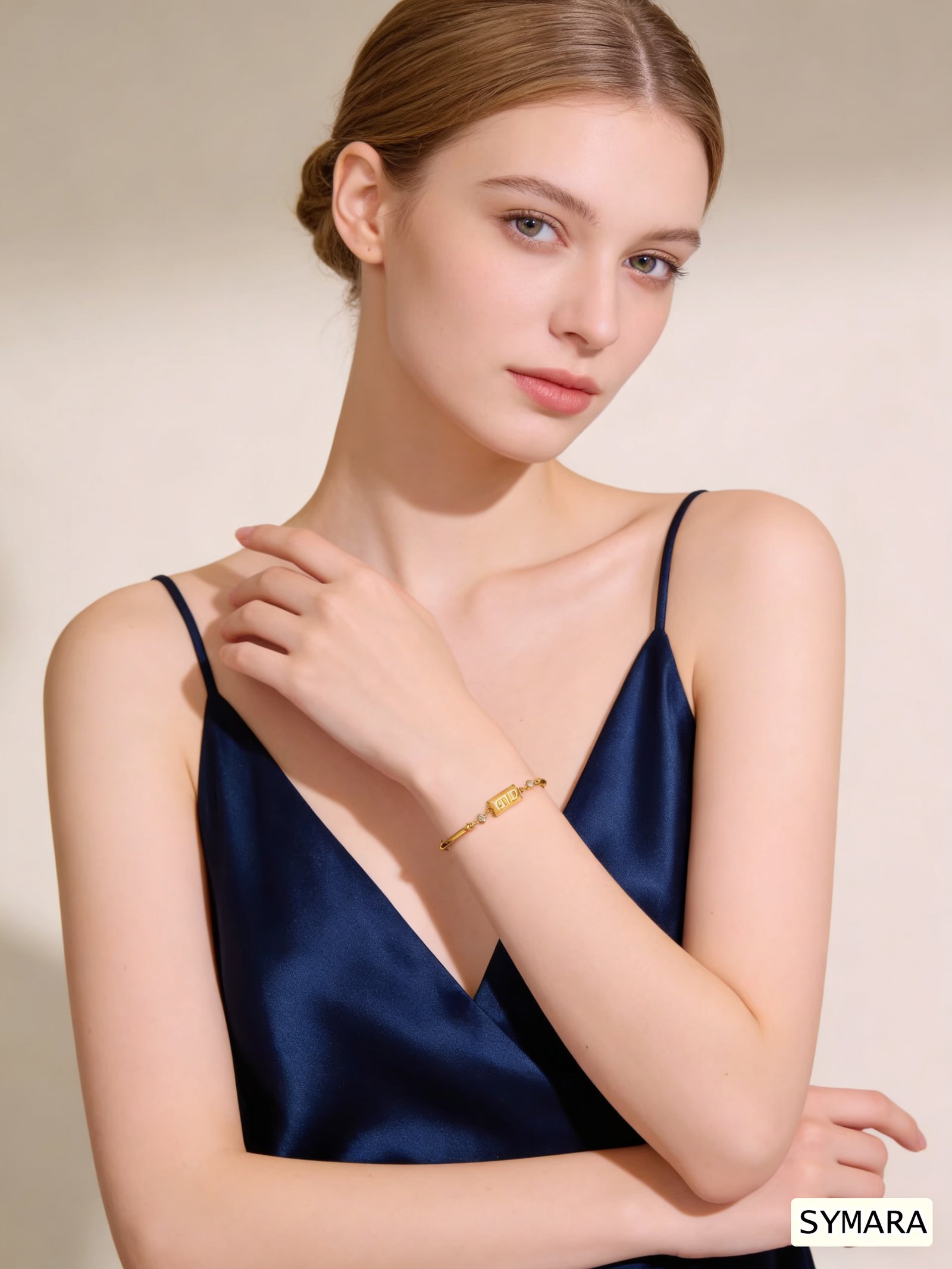 A minimalist 18K gold plated bar bracelet with a small “GOLD” brick charm and sparkling cubic zirconia stones. Hypoallergenic and adjustable, it’s perfect for daily wear or layering. A timeless gift from SYMARA.