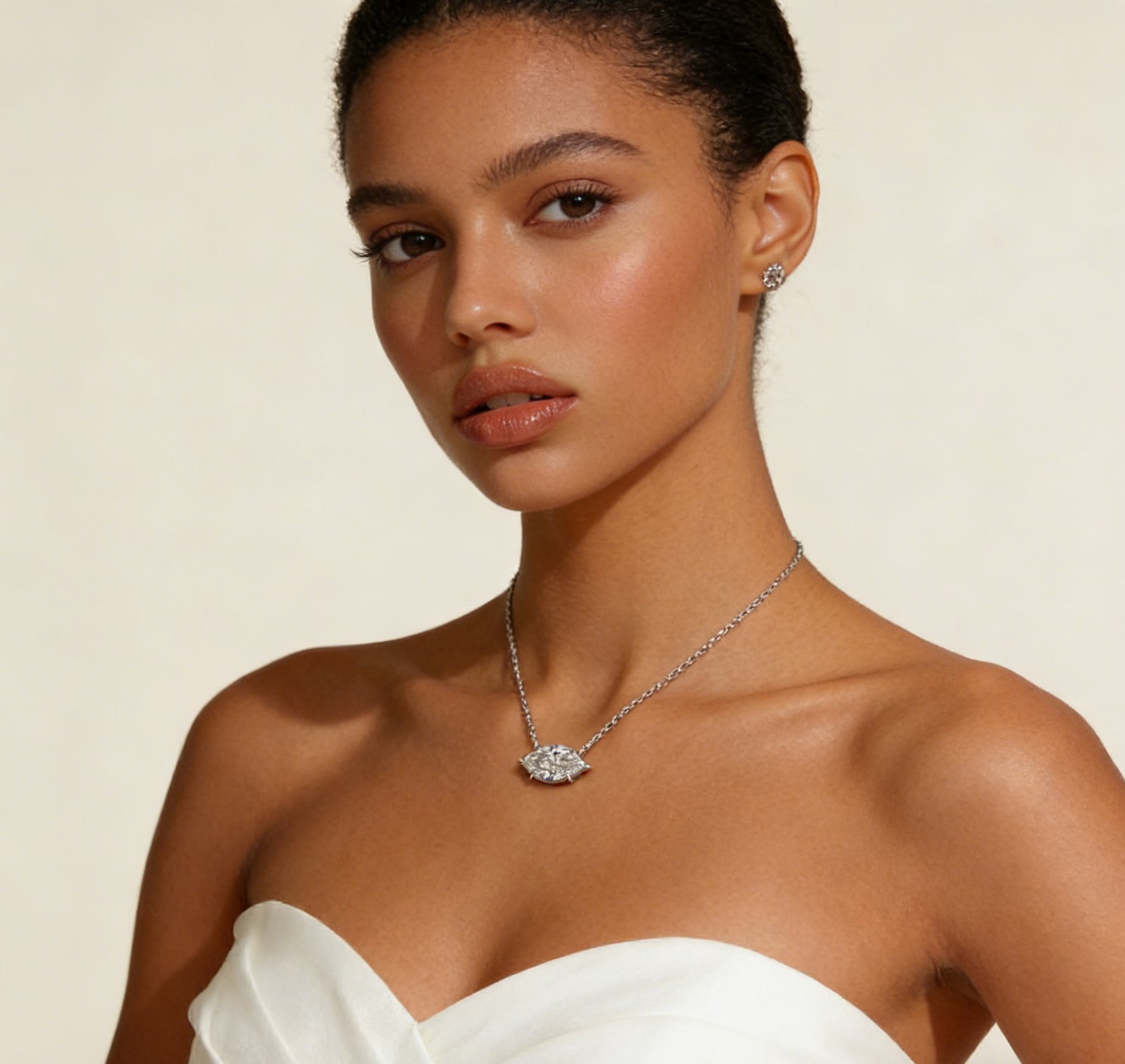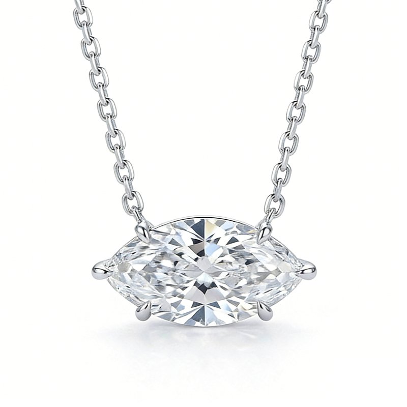 Our 6-prong marquise cut cubic zirconia necklace brings together classic jewelry architecture and everyday wearability. The marquise shape has always been a favorite—elongated, flattering, with enough presence to stand alone. We set it in a six-prong design that holds the stone securely while allowing light to pass through from every angle. It catches easily, without trying too hard.