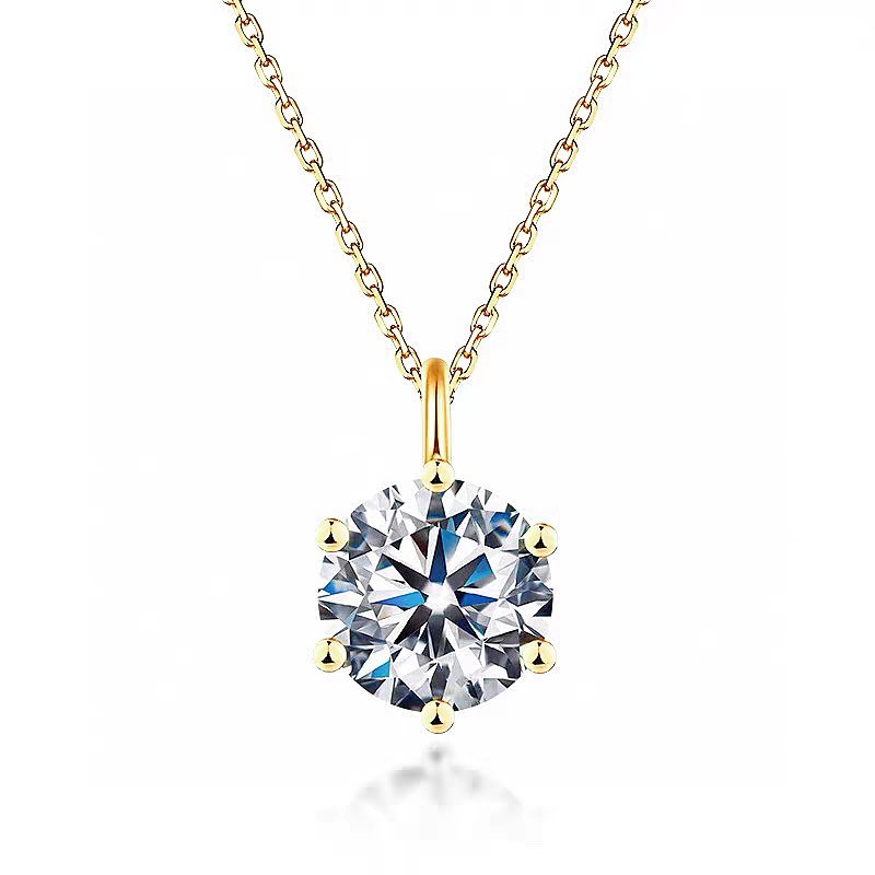 A classic 6-prong solitaire pendant featuring a brilliant round cut lab grown diamond. D color, VVS1 clarity. Conflict-free and eco-friendly. Choose from 0.5ct to 1ct, set in sterling silver with your choice of 18K white gold, 18K yellow gold, or PT950 platinum finish. The 45cm chain sits perfectly for daily wear or special occasions.