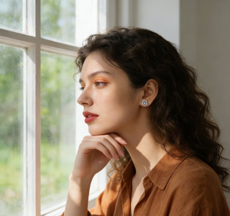 We at SYMARA create crown four-prong moissanite stud earrings for everyday wear. These small, thoughtful studs fit easily into your life, not just your jewelry box. The 5mm moissanite sits quietly in a secure crown setting, catching light softly as you move. We use hypoallergenic 925 sterling silver with platinum plating, so they feel gentle even on sensitive ears.