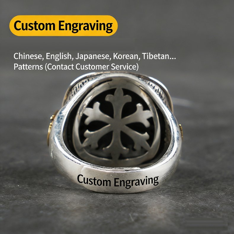 Small cubic zirconia inlays add subtle sparkle around the iconic motif, no flashiness just a nice detail. It’s part of our Vintage Style Rings collection, blending retro vibes with everyday wearability, and we offer free custom engraving to make it uniquely yours.