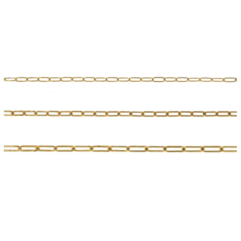 The chain is delicate without being fragile. An elongated paperclip link, polished smooth, catching light in small flashes when you move. It’s thin enough to wear alone and barely notice, substantial enough that you know it’s there.