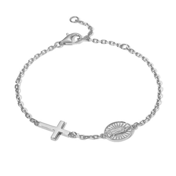 There are certain things you want close—not in a pocket or a bag, but right there on your wrist, where you can see them throughout the day. This bracelet is for that. A simple cross and a Virgin Mary medallion, side by side. Nothing flashy. Just something to glance down at when you need it.