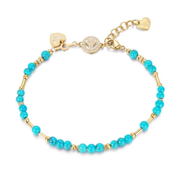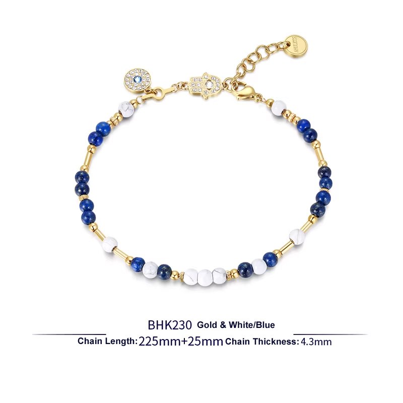 SYMARA Hawaiian style agate anklet for women. Available in four unique gemstone styles with different symbolic meanings. Titanium steel with rose gold & gold plating, natural blue-vein stone, sexy luxurious design, perfect gift for girlfriend.