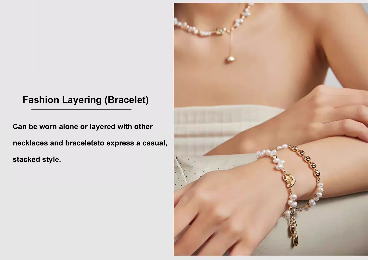 With a white shirt, the bracelet peeks out from under the cuff, subtle but there. On weekends, try stacking it with a thin chain bracelet or a watch—the layers add just enough interest. Add the Lucky Earrings for a coordinated sparkle, or layer the Lucky Necklace with other pendants for a personalized look. It’s a natural choice for those who love stacking pearl jewelry. We wear it that way ourselves all the time.