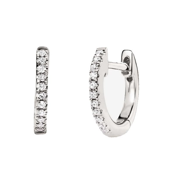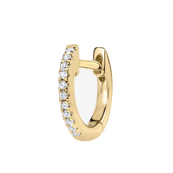Our Petite Diamond Huggies: comfortable enough to forget you’re wearing them, with precision pave diamonds that sparkle continuously around the ear. 14k gold.