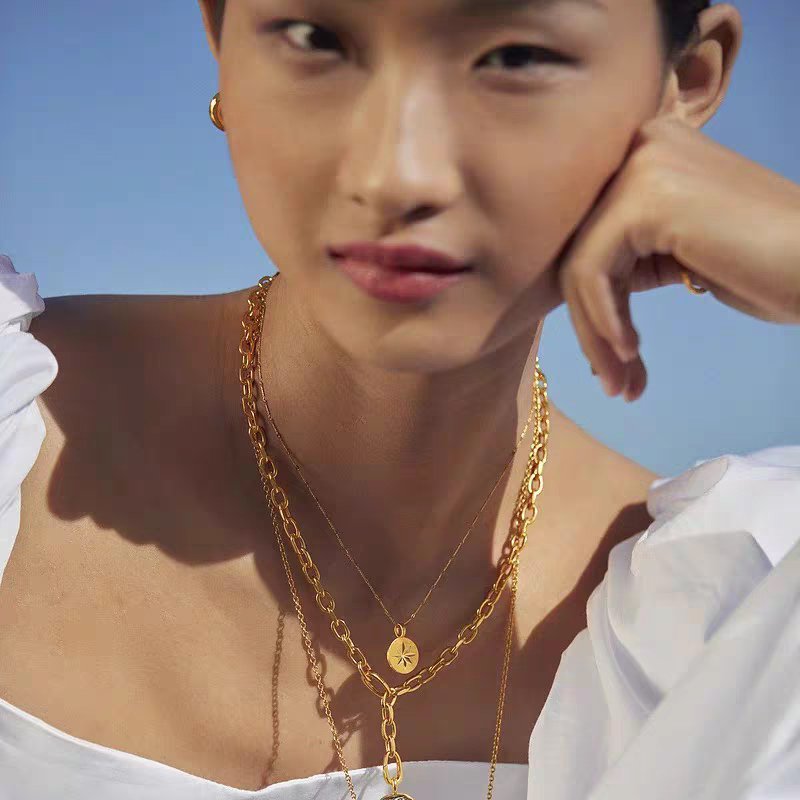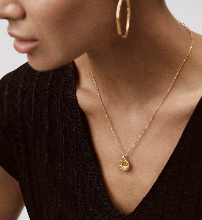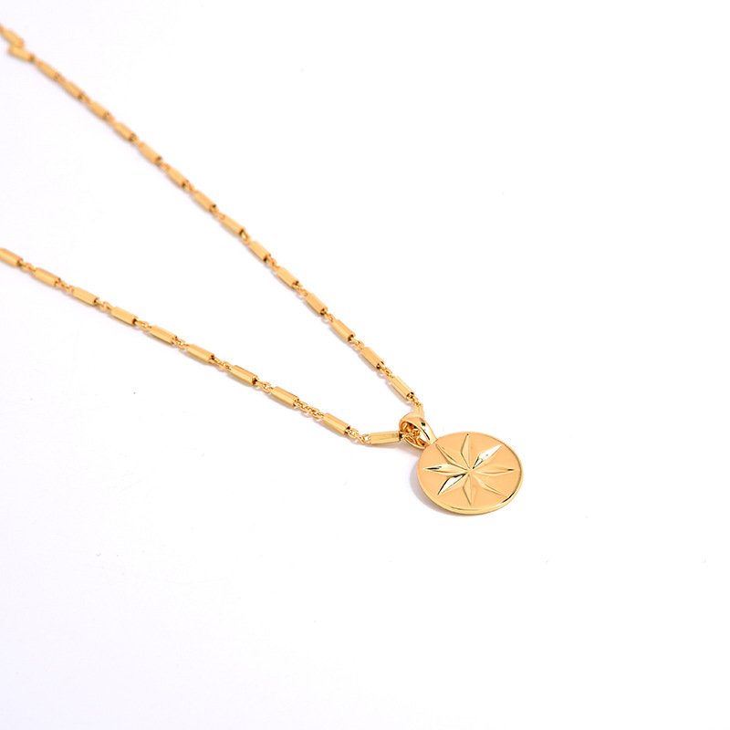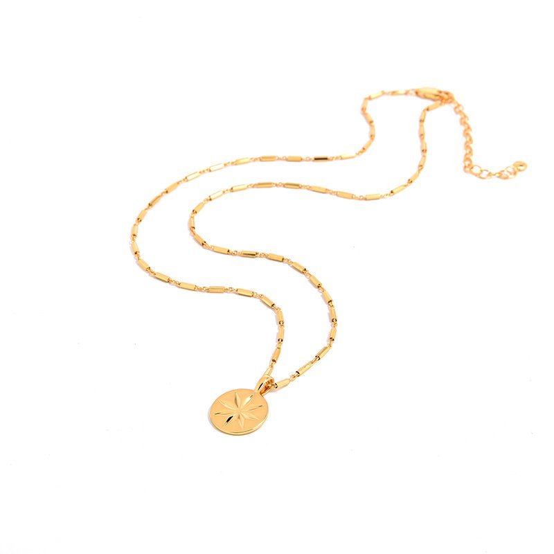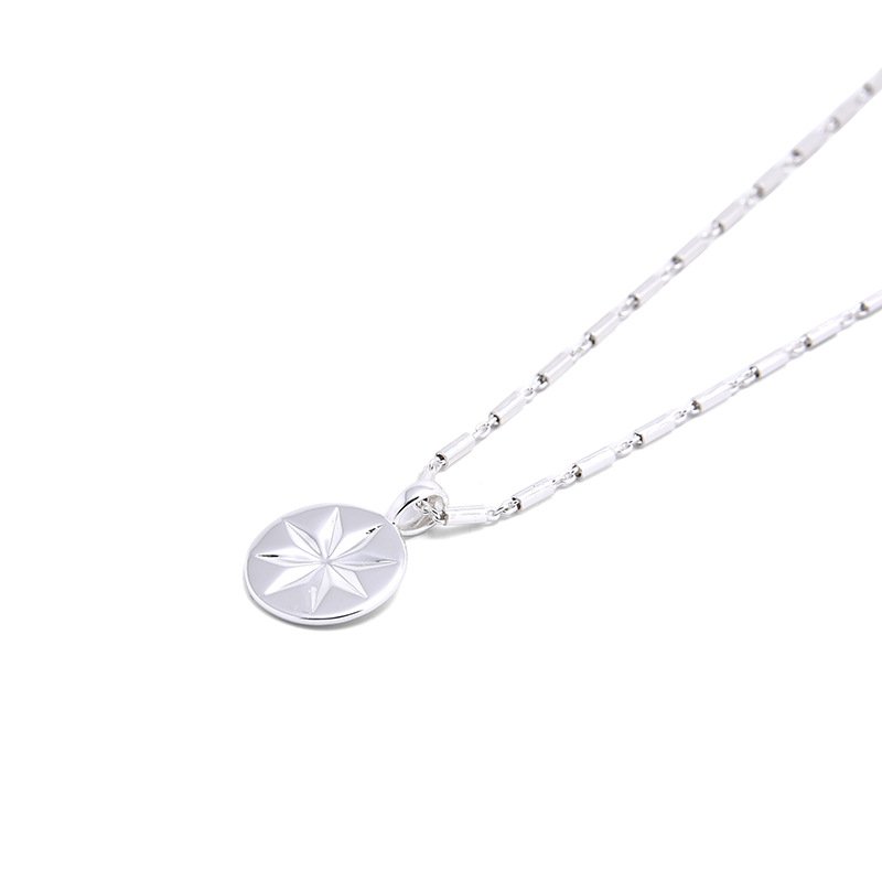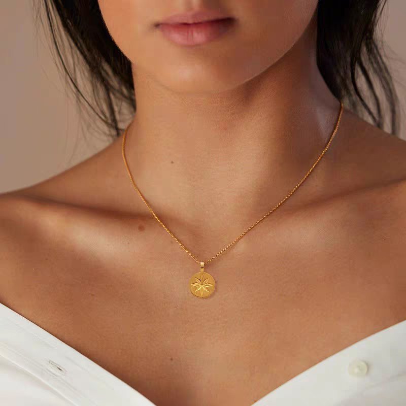 Our north star coin pendant is a small, flat coin—just 12mm across—with an engraved 8-point star. It is not loud or flashy. It simply sits there, against your chest, as a personal reminder of where you are headed.