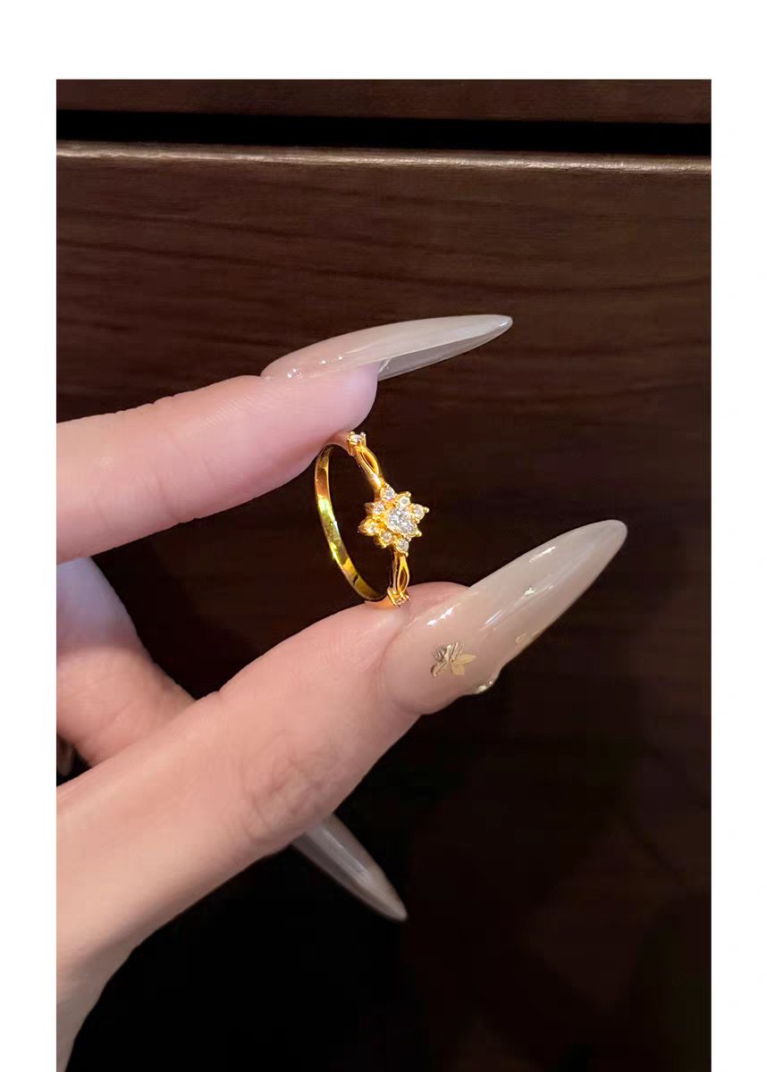 And here’s the thing you’ll feel before you see: the weight. Or rather, the lack of it. At only 0.55g, this is an elegant women’s gold ring designed to disappear on your finger. You’ll forget it’s there until sunlight hits that sparkling moissanite just right—then you’ll remember. The classic sunflower setting gives it that open, optimistic feel without being flashy. It’s refined, but it doesn’t try too hard.