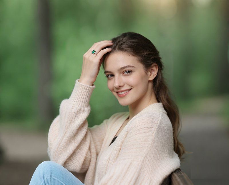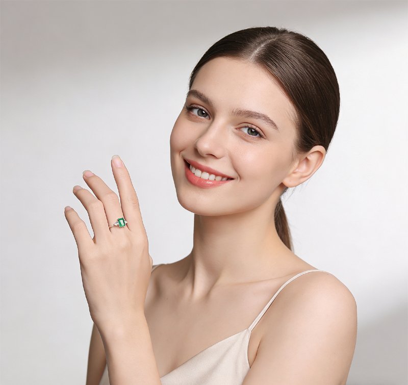 Honestly, we made this ring to be worn—not saved in a box. The lab grown emerald has that sharp octagonal cut, so it catches light in little flashes when you move. I love that it works just as well with a t-shirt as it does with something dressier. The white gold plating over S925 silver holds up, and because it’s hypoallergenic, it won’t bother your skin even if you wear it all day. And the open band? It just bends to fit your finger, no resizing needed. So whether you’re at your desk, out for coffee, or at dinner, it stays comfortable and pretty.