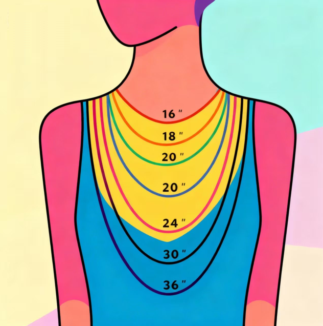 Necklaces come in different chain lengths. Your neck size and pendant size affect how it looks alone or layered.