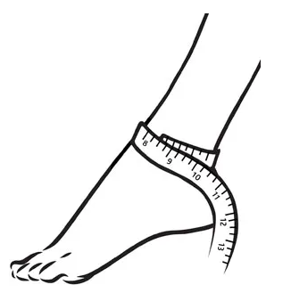 - Wrap it above the ankle bone at the narrowest part. Keep it snug but not tight; write down the length in cm or inches.